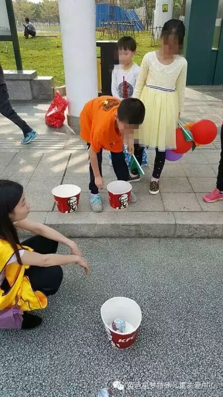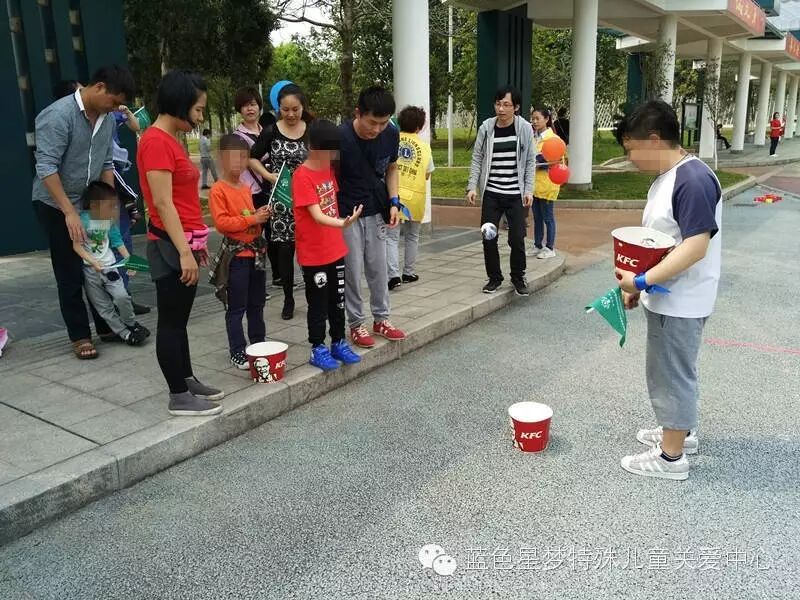 当主持人宣布“绿荫行动-特殊儿童融合嘉年华”开始,小朋友在欣赏到大哥哥姐姐们的精彩表演同时,也到各个分会场参加精彩有趣的游戏竞赛活动。看,小朋友玩得多开心!蓝色星梦组织的“定点投球”游戏和“踩脚踏石”游戏,吸引了众多小朋友参加。大家在欢乐的氛围中,既玩得开心,又锻炼了动作的协调能力和自信心。