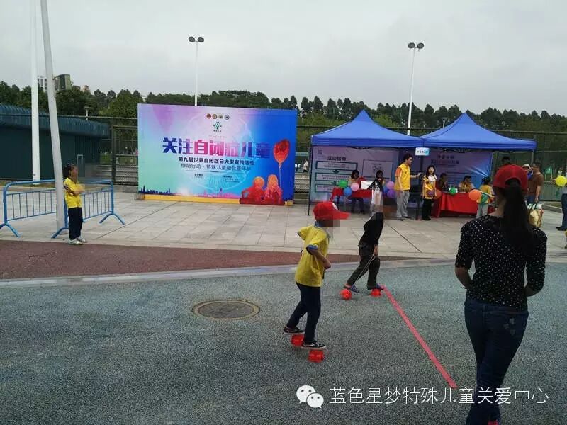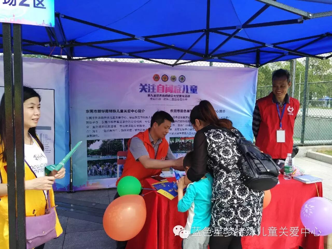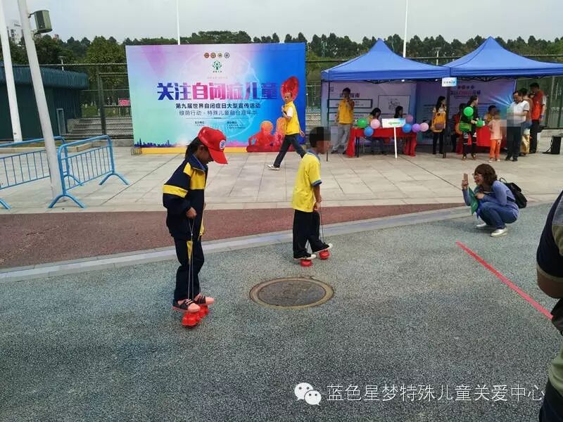2016年4月2日是全国第九个国际自闭症日。广东狮子会扬善服务队,在东莞长安体育广场举行了“绿荫行动-特殊儿童融合嘉年华”的大型公益宣传活动,我中心的师生们积极参与了本次活动。